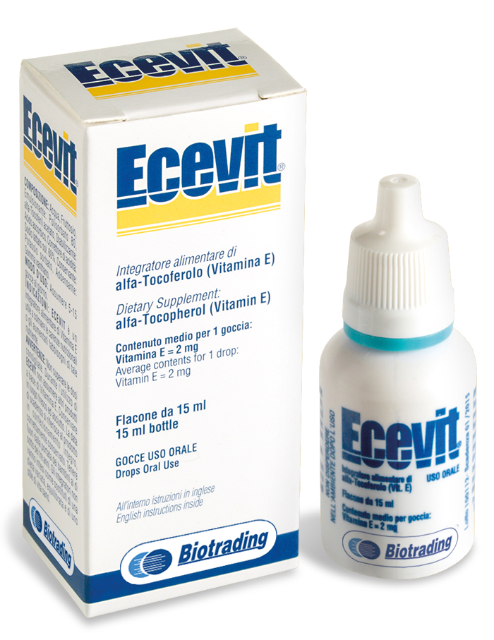 Ecevit gocce è Alfa-Tocoferolo Acetato (la forma più attiva della vitamina E) ad alto dosaggio in olio: 1 goccia contiene 10 mg di vitamina E.